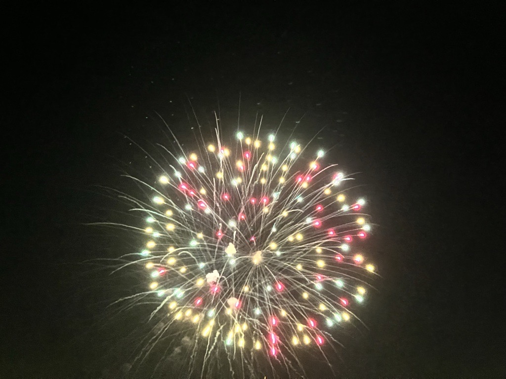 夜空に広がる色鮮やかな花火と静かに咲く桜の共演はまさに圧巻で、その美しさに思わず見入ってしまいました。