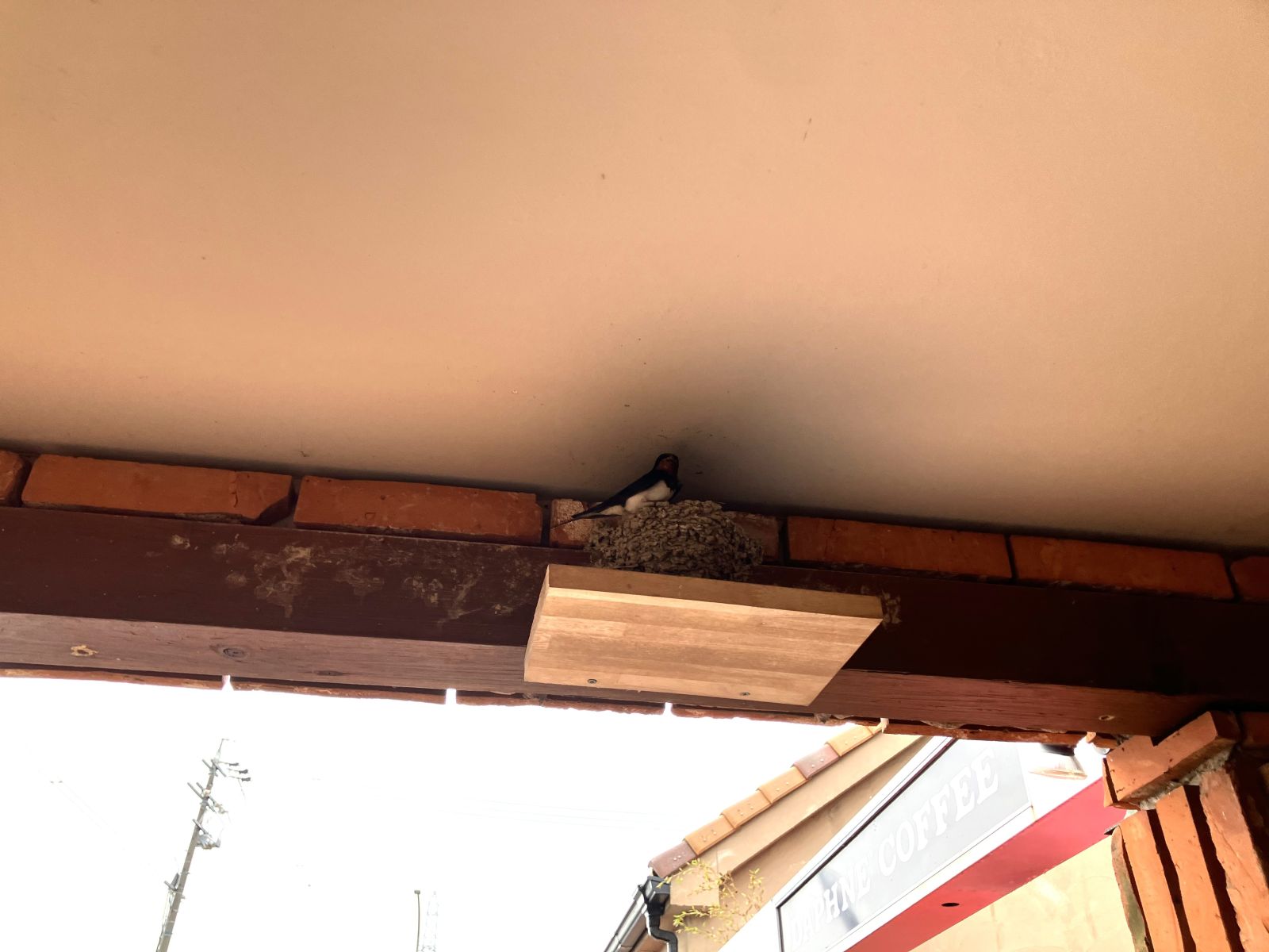 お店の方に伺うと、毎年この場所に巣を作りに来るのだそうです。