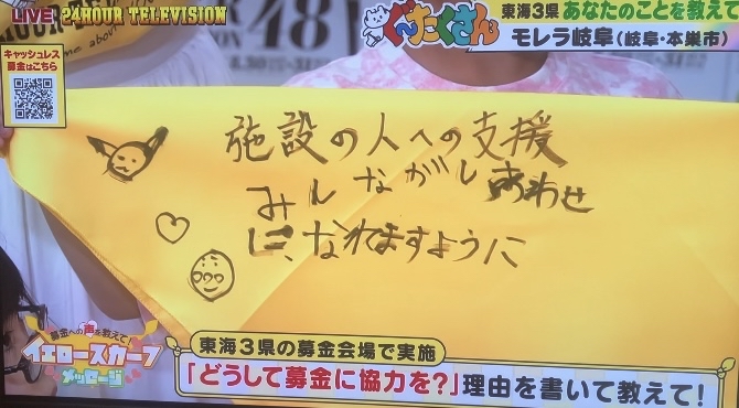 偶然のこととはいえ、テレビに映っていたことにも驚きましたが、その内容が「施設の人への支援、みんなが幸せになれますように」との思いで募金に協力されていて、お子さんお二人と一緒にインタビューを受ける姿が大変ほほえましく、温かい気持ちになりました。